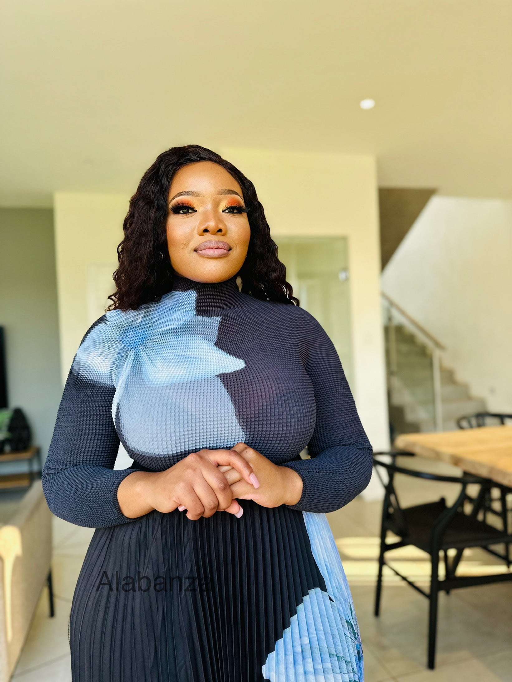 Zari Black Blue Floral Pleat Set