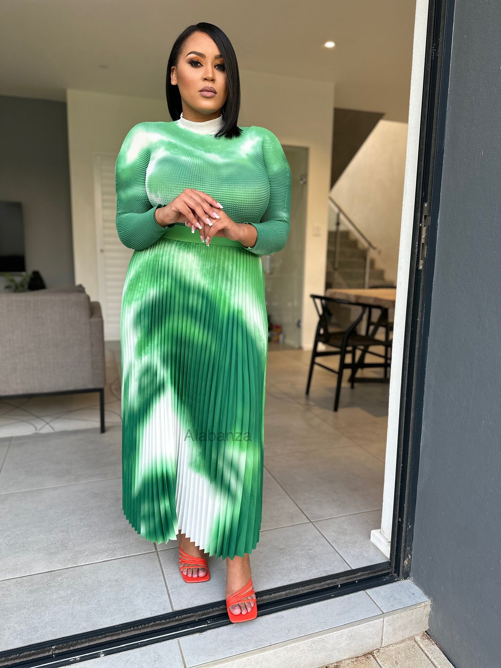 Zari Green and White Pleat Set (Pre loved -Worn no more than twice). T&C's Apply: no return, refund, or exchange